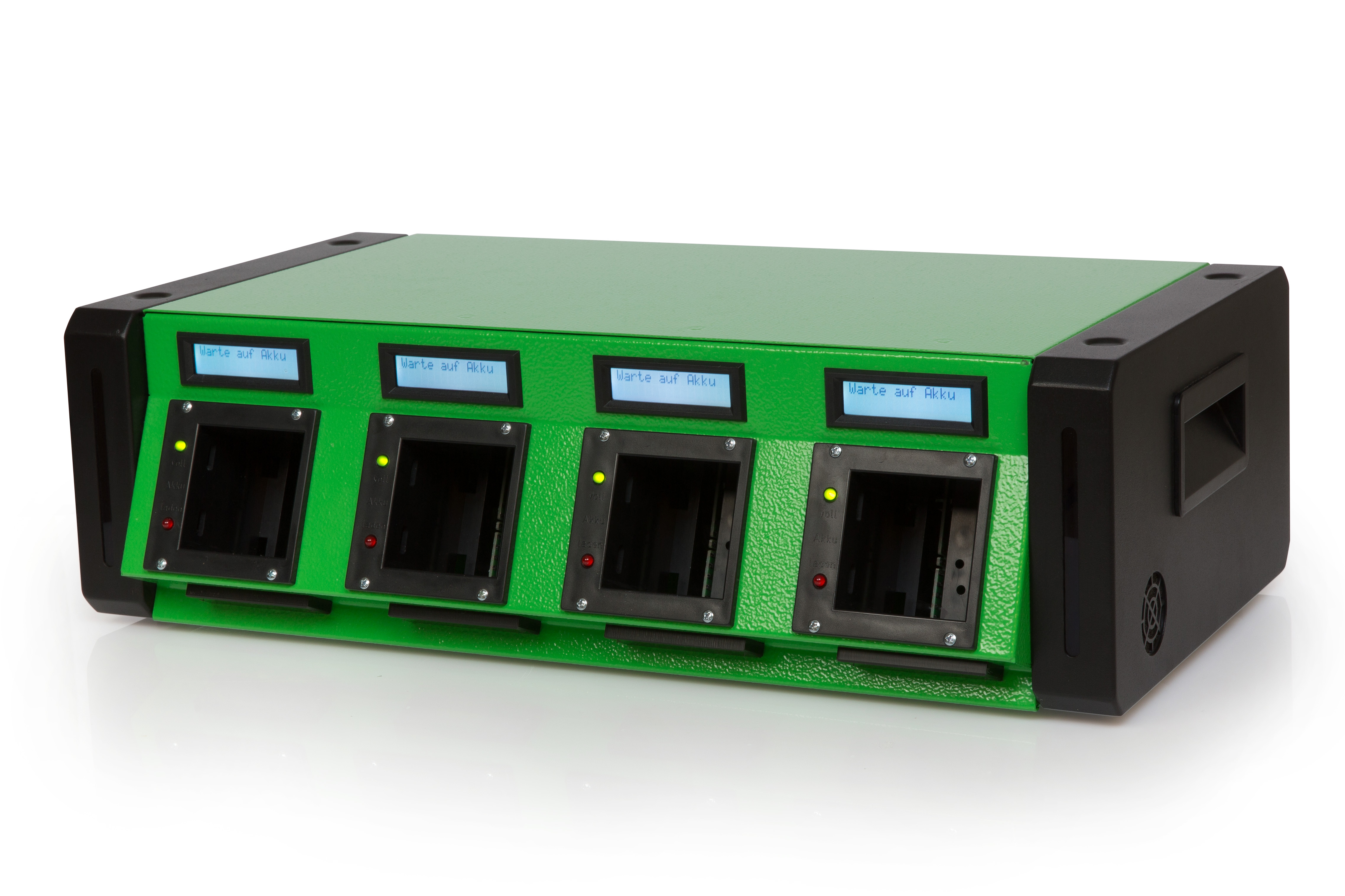 Universal Akku-Ladestation mit LCD-Display 4 Ladefächer