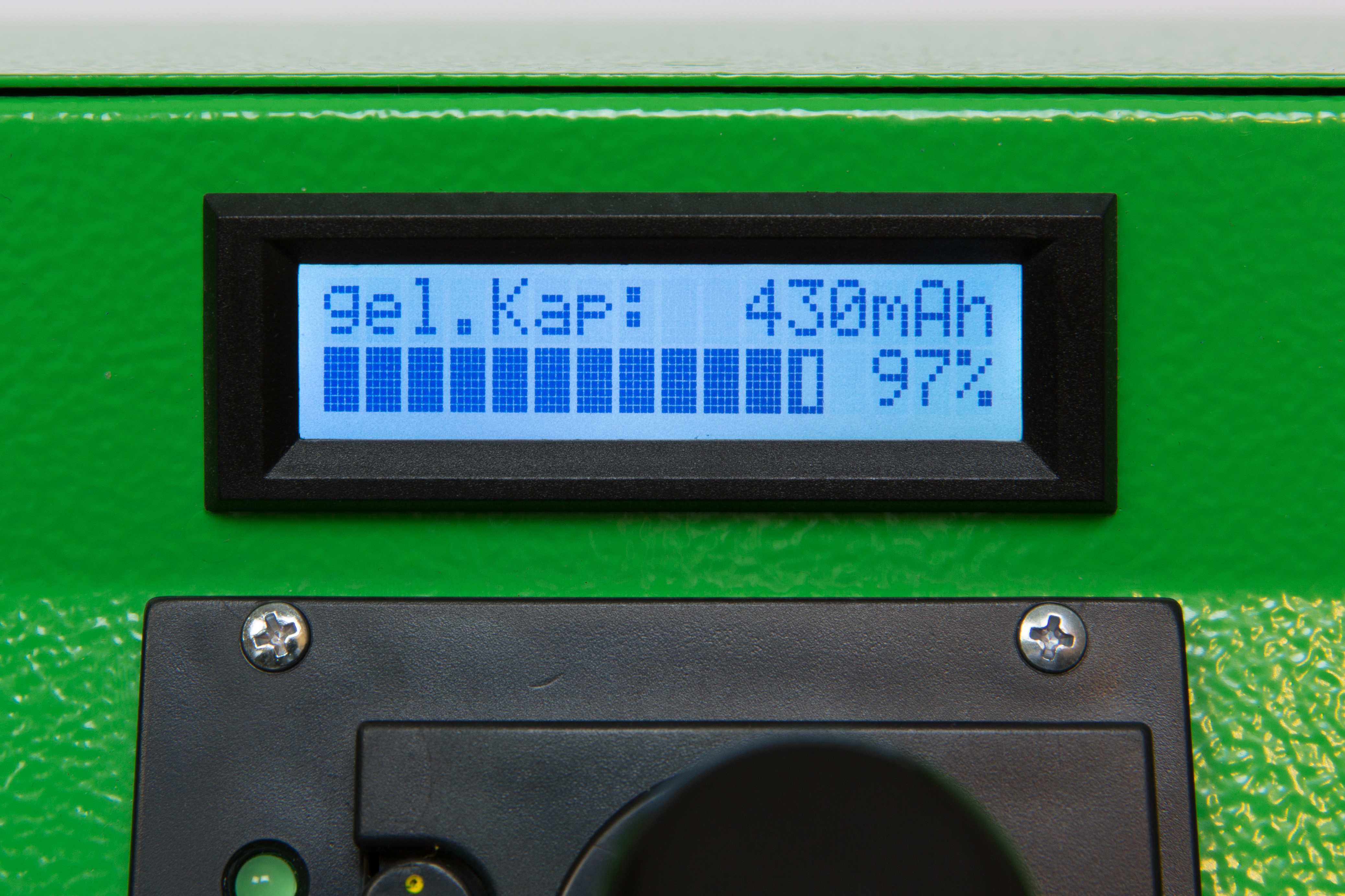 | Akkuspannung: | 1,2 Volt - 24Volt NiCd/NiMH/PB, 3,6 Volt - 36 Volt Li-Ion/LiPo 2 Volt - 24 Volt PB-Akkumulatoren |